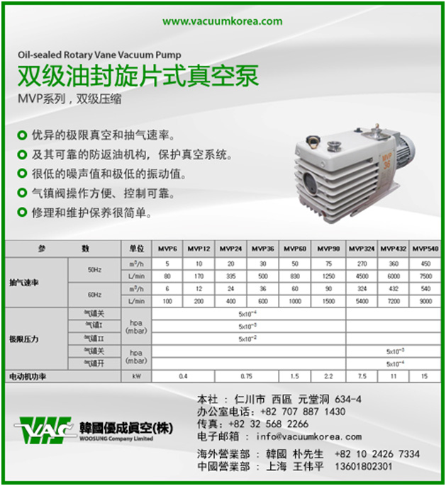 MVP雙級油封旋片真空泵技術(shù)參數(shù)(韓國WOOSUNG產(chǎn)品)